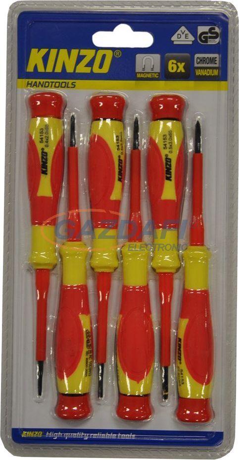 KINZO csavarhúzó készlet, 1000V-ig szigetelt, 6 részes