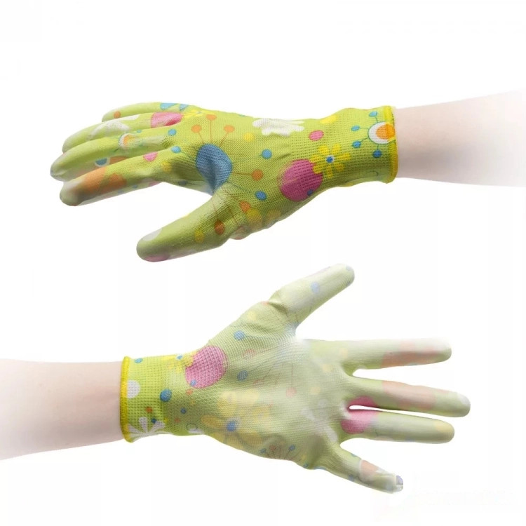 Varrás nélküli kesztyű, víztaszító nitrilbevonattal a tenyérrészen.