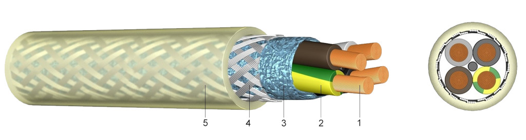 - Alkalmazása: Alkalmas azon berendezésekhez, eszközökhöz és gépekhez, ahol a környezeti feltételek miatt megengedhetetlen az elektromágneses mező zavaró hatása. Közepes mechanikai igénybevételre száraz és nedves helyiségekben, fix és flexibilis felhasználás esetén egyaránt.