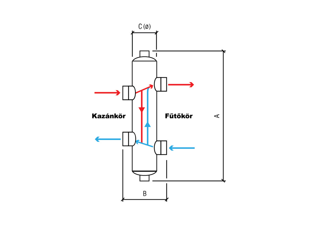 - A kazánkör és a fűtési körök hidraulikai szétválasztása
