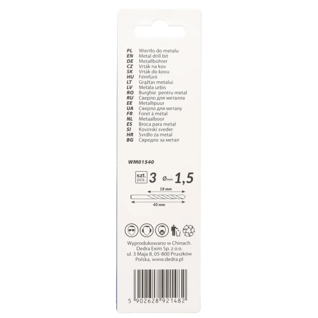 DEDRA WM01540 Fémfúró 3 db/csomag, HSS, DIN338, 1,5x40mm, 135°