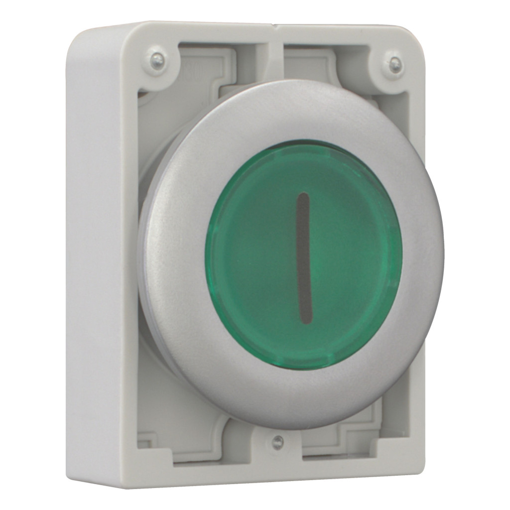 EATON 182932 Világító reteszelt nyomógomb,30mm,lapos,zöld,"I"