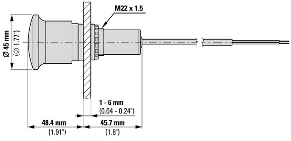 EATON 185156 Kompakt vészleállító gomb, 45mm, elforgatható, 2Ny, 3,5m kábel szabad vég