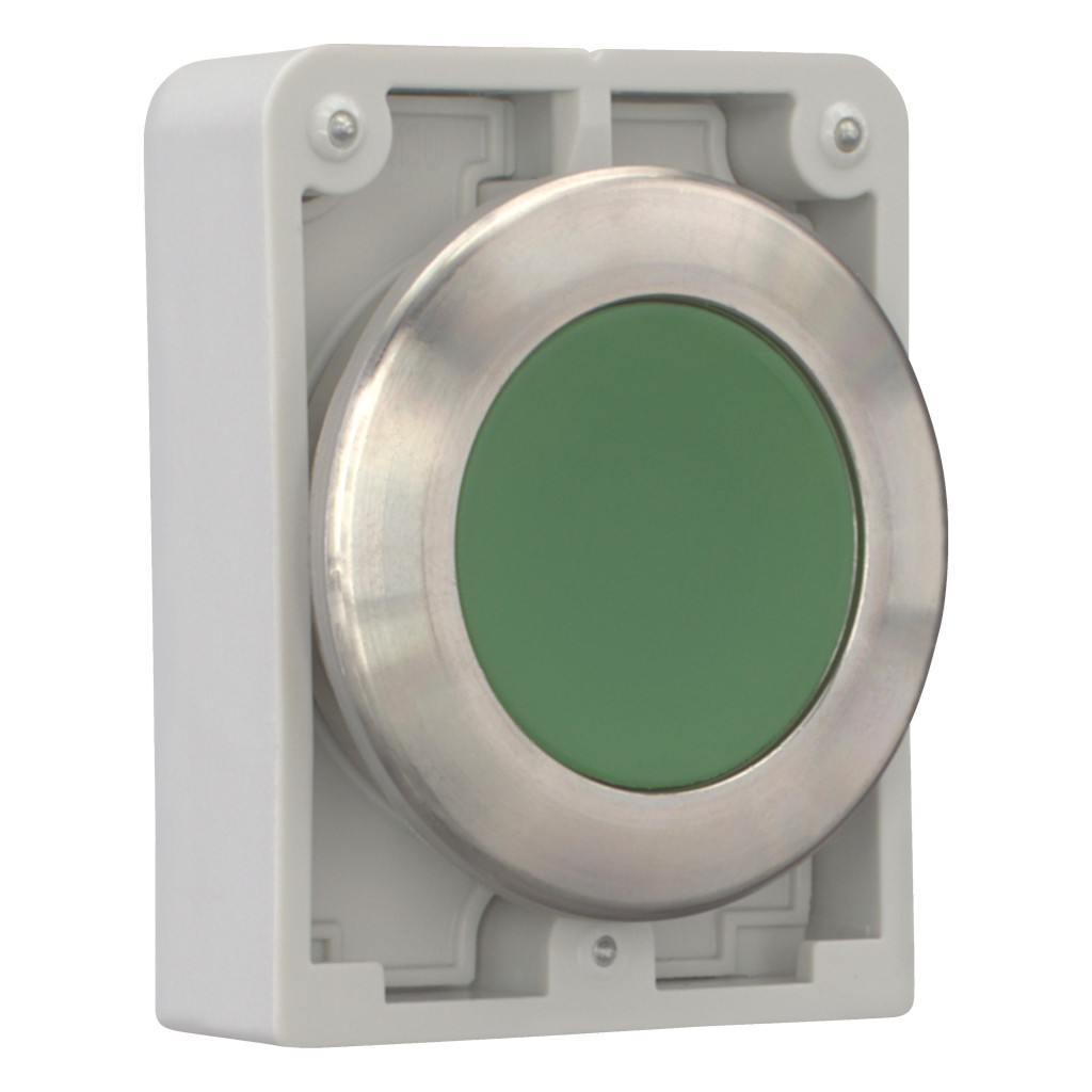 EATON 188095 Nyomógomb vezérlőfej, süllyesztett nyomógomb, reteszeléssel, rozsdamentes acél gyűrű, zöld