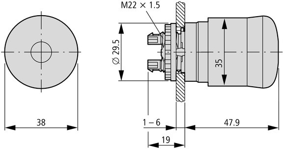 EATON 230962 M22S-PVL Vil. STOP-KI nyomógomb,visszaáll.húzással,fek.fej