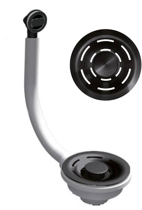 FLOW szűrő és túlfolyó egymedencés mosogatókhoz fekete színben.
