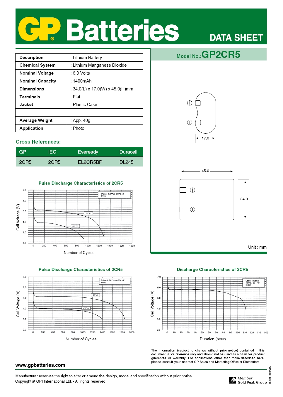 Gyártó EMOSGyártói cikkszám 1022000511Súly 43Vonalkód / EAN-kód 4891199001109értékesítési csomagolás 1 db, bliszterméretek 34 × 17 × 45 mmmárka GPtölthető nemtípus 2CR5 (EL2CR5BP, DL245)akkumulátor mérete nincs megadvakapacitás 1 400 mAhkategória/sorozat Lithiumkémiai összetétel lítiummax. tárolási idő 10 évtöltési ciklusok száma nem tölthetőEMOS TERMÉKKATALÓGUS (2025/2026) EMOS ÚJDONSÁGOK KATALÓGUS (2025) EMOS KARÁCSONYI KATALÓGUS (2025) EMOS LIGHTING KATALÓGUS (2025/2026) EMOS GOSMART KATALÓGUS EMOS KERTÉSZETI TERMÉKEK KATALÓGUSA Cikkszám EMOSB1505