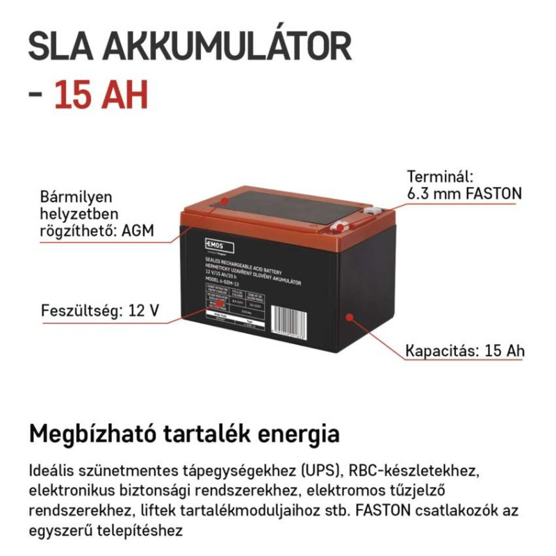 EMOS B9656V AKKU.SLA 12V 15AH FAST.6.3 MM VONTATÁS