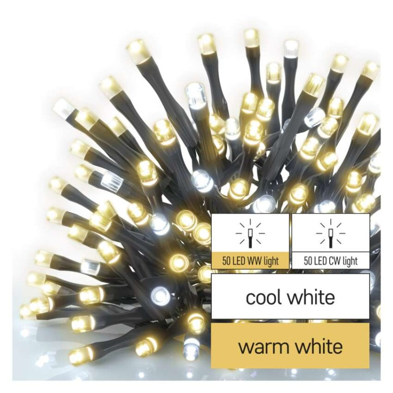 EMOS D1AN01 Standard LED sorolható karácsonyi füzér, 10 m, kültéri, meleg/hideg fehér, időzítő, 1,2 W, 230 V AC, IP44