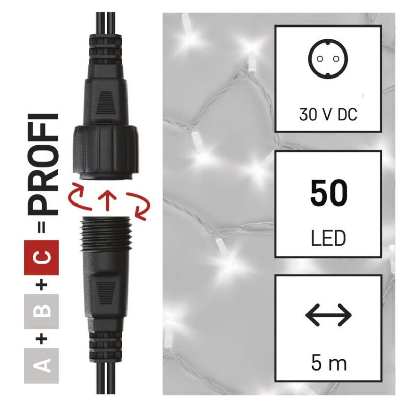EMOS D2AC02 Profi LED sorolható füzér, fehér, 5 m, kültéri és beltéri, hideg fehér, időzítő, 0,9 W, 230 V AC, IP44 általános leírása: