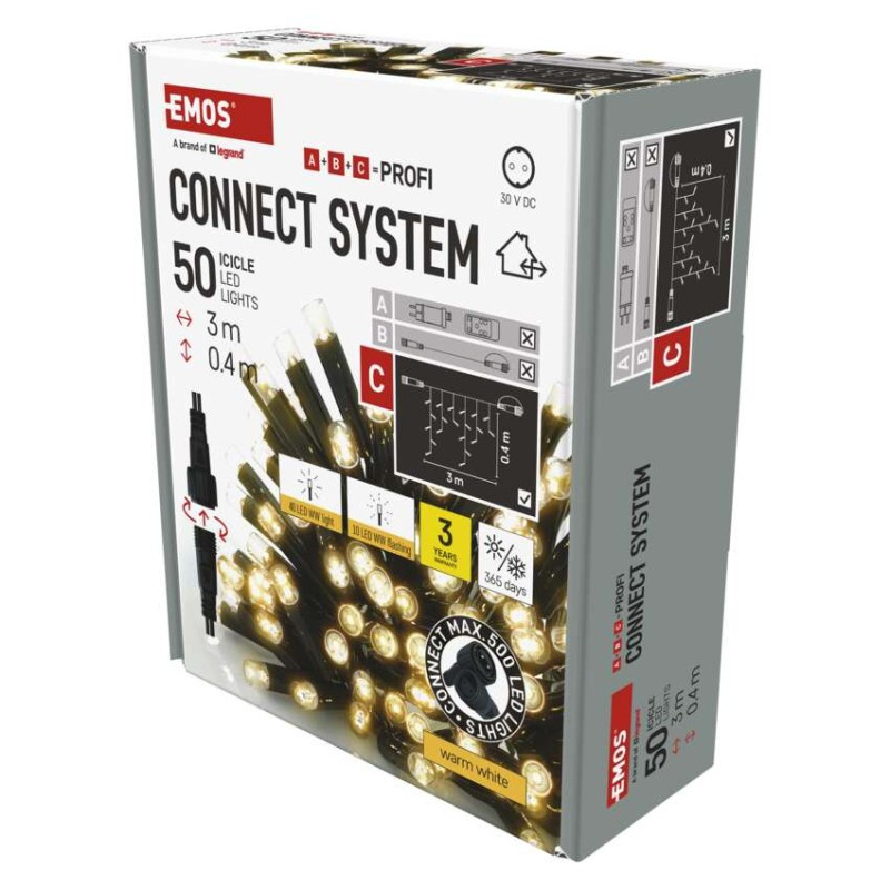 EMOS D2CW03 Profi LED sorolható füzér, villogó – jégcsapok, 3 m, kültéri, meleg fehér, időzítő, 0,9 W, 230 V AC, IP44 általános leírása: