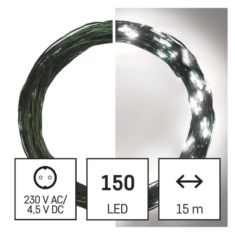 EMOS D3AC05 LED karácsonyi nano fényfüzér, zöld, 15 m, kültéri és beltéri, hideg fehér, időzítő, 3,6 W, 230 V AC, IP44