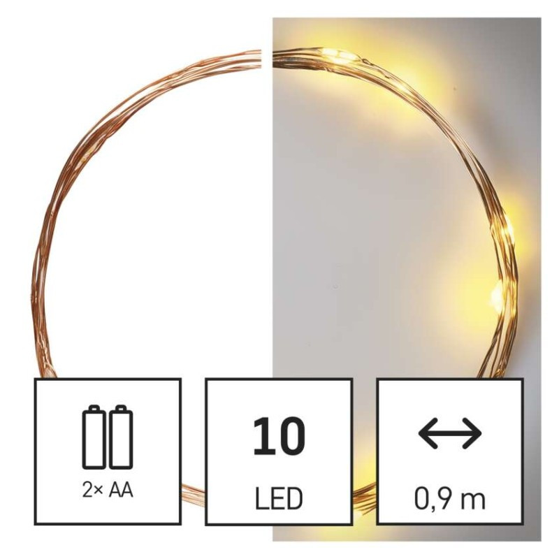 EMOS D3AW06 LED karácsonyi nano fényfüzér, réz, 0,9 m, 2x AA, beltéri, meleg fehér, időzítő, 0,6 W, elem (2× AA), IP20 általános leírása: