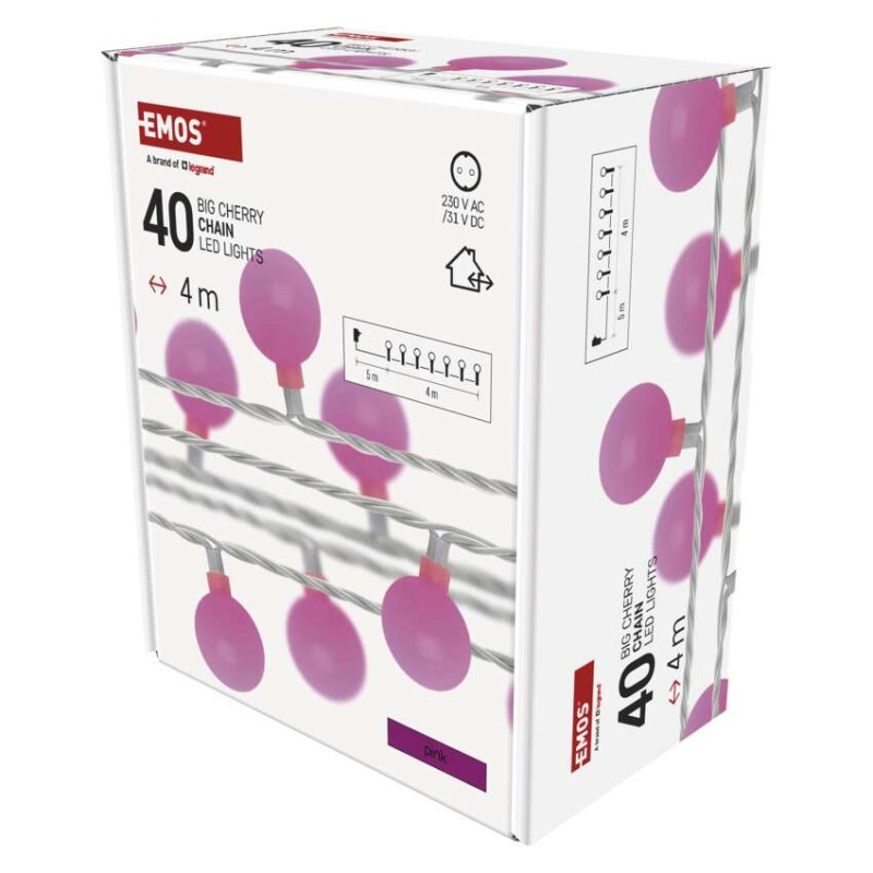 EMOS D5AP01 LED fényfüzér, cseresznye – golyók 2,5 cm, 4 m, kültéri és beltéri, rózsaszínű, időzítő, 3,6 W, 230 V AC, IP44