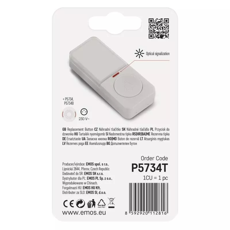 EMOS P5734T Kültéri tartozék nyomógomb P5734, P5734B csengőhöz, 1x CR2032