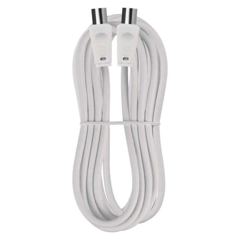 Koaxiális antennakábel IEC csatlakozódugóval és csatlakozóhüvellyel. A kábel kettős árnyékolású az elektromágneses interferencia csökkentése érdekében. 5 m-es kábelhossz.A koaxiális kábel használható műholdvevőhöz, digitális vevőkészülékhez, antennához, átalakítóhoz, síkképernyős tévéhez és hagyományos televízióhoz.