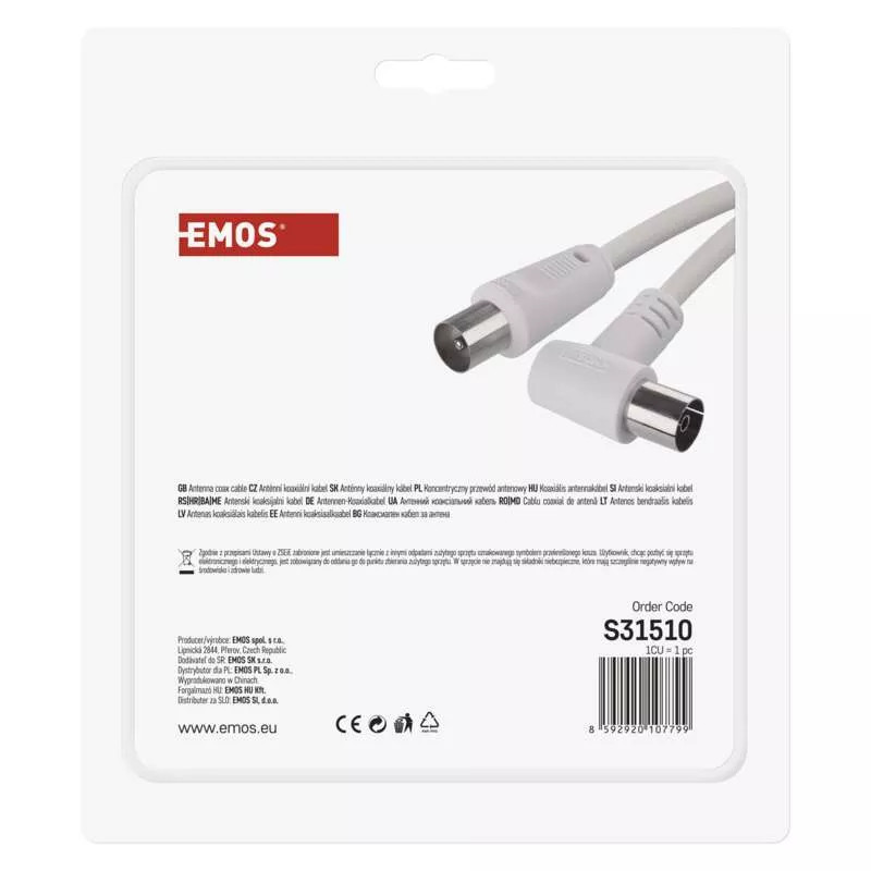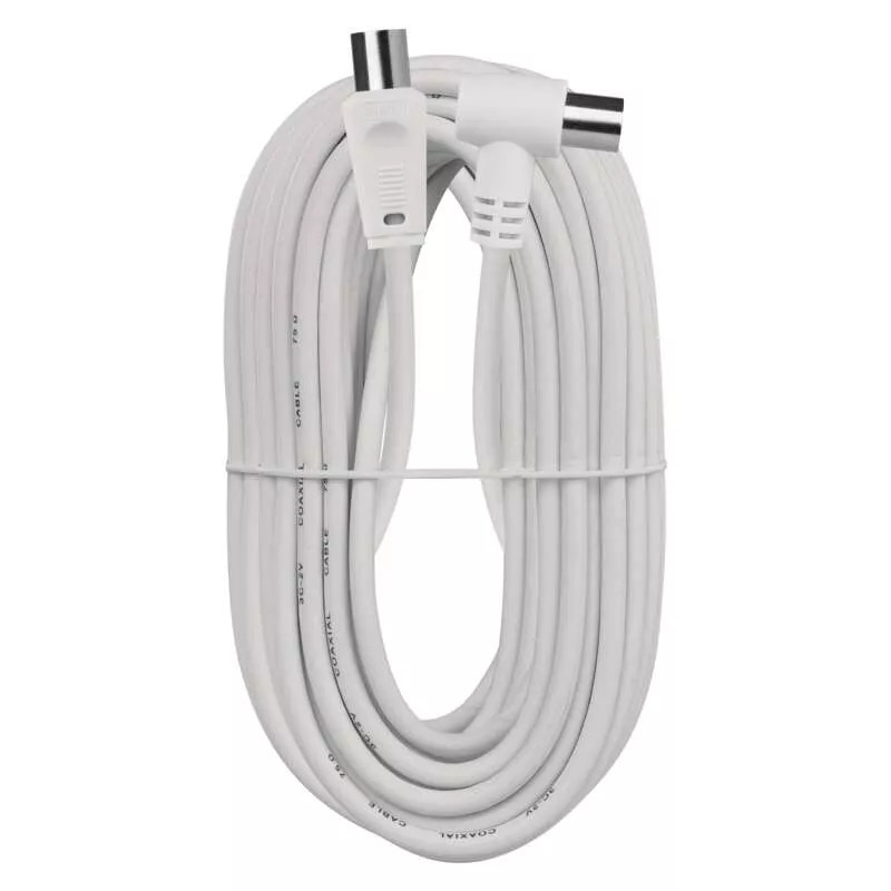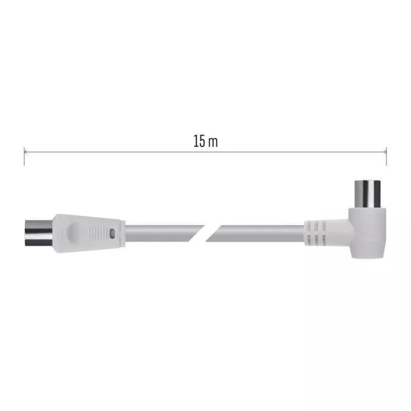 Koaxiális antennakábel IEC csatlakozódugóval és csatlakozóhüvellyel. A kábel 90°-os hajlított csatlakozóval rendelkezik. A kábel kettős árnyékolású az elektromágneses interferencia csökkentése érdekében. 15 m-es kábelhossz.A koaxiális kábel használható műholdvevőhöz, digitális vevőkészülékhez, antennához, átalakítóhoz, síkképernyős tévéhez és hagyományos televízióhoz.