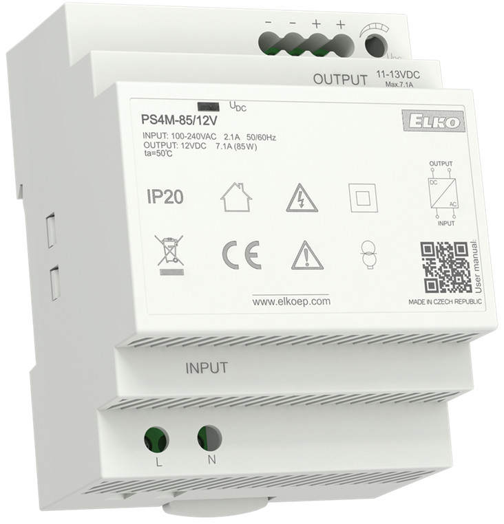 - PS4M-85/12V - stabilizált tápegység fix kimeneti feszültséggel, DC 12V/85W