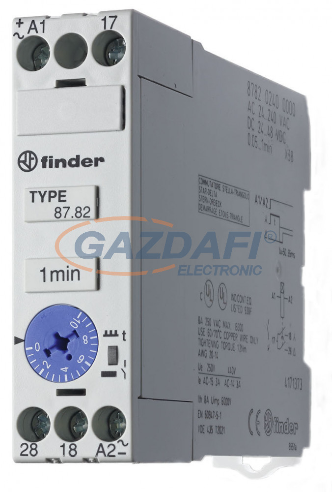 FINDER 87.82.0.240.0000 Csillag-delta indító időrelé, 8A