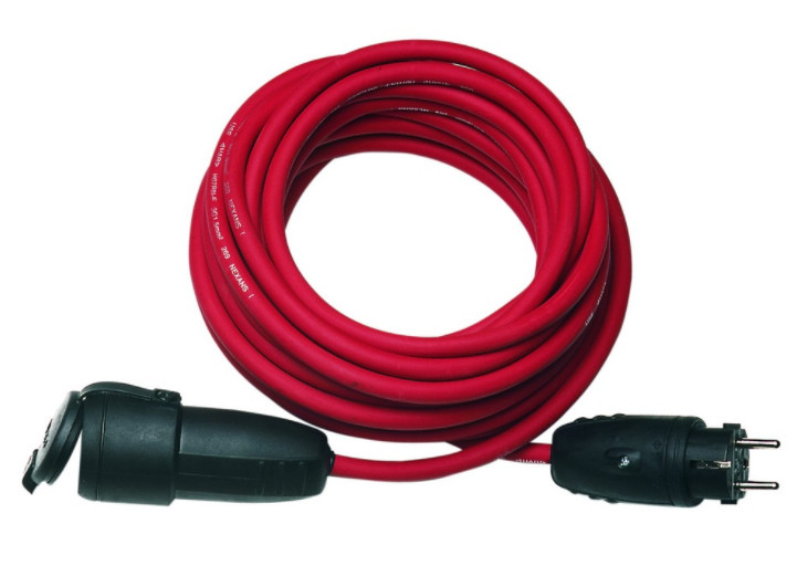 GAO 006326 Földelt lengő hosszabbító csf. 25m, H07V3V3-F 3x1.5, piros IP44 általános leírása: