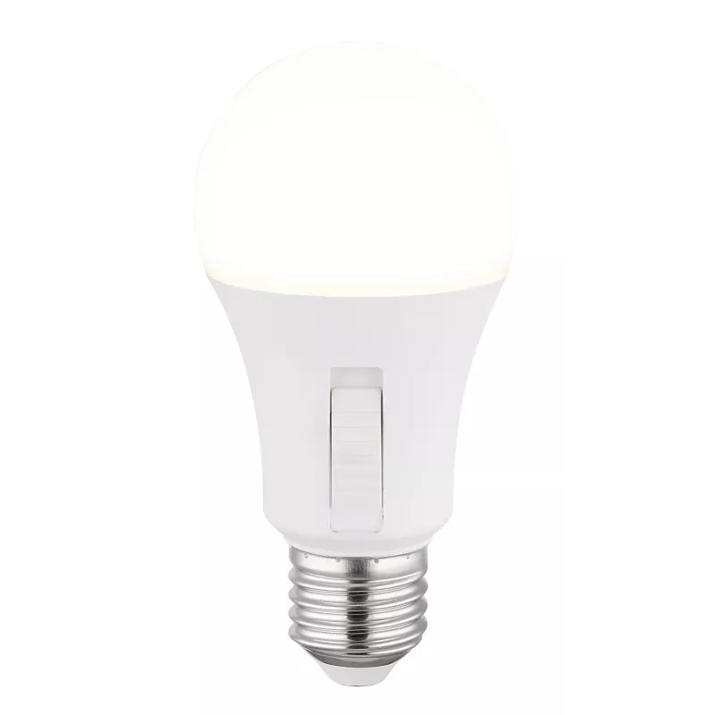 LED izzó, matt fehér műanyag, matt nikkel alumínium, csúszókapcsoló, lépcsős kapcsoló, ø: 60mm, M: 120mm, 1x E27 LED 9W 230V, 830lm forrás, 830lm kimenet, CCT 3000/4000/6500K