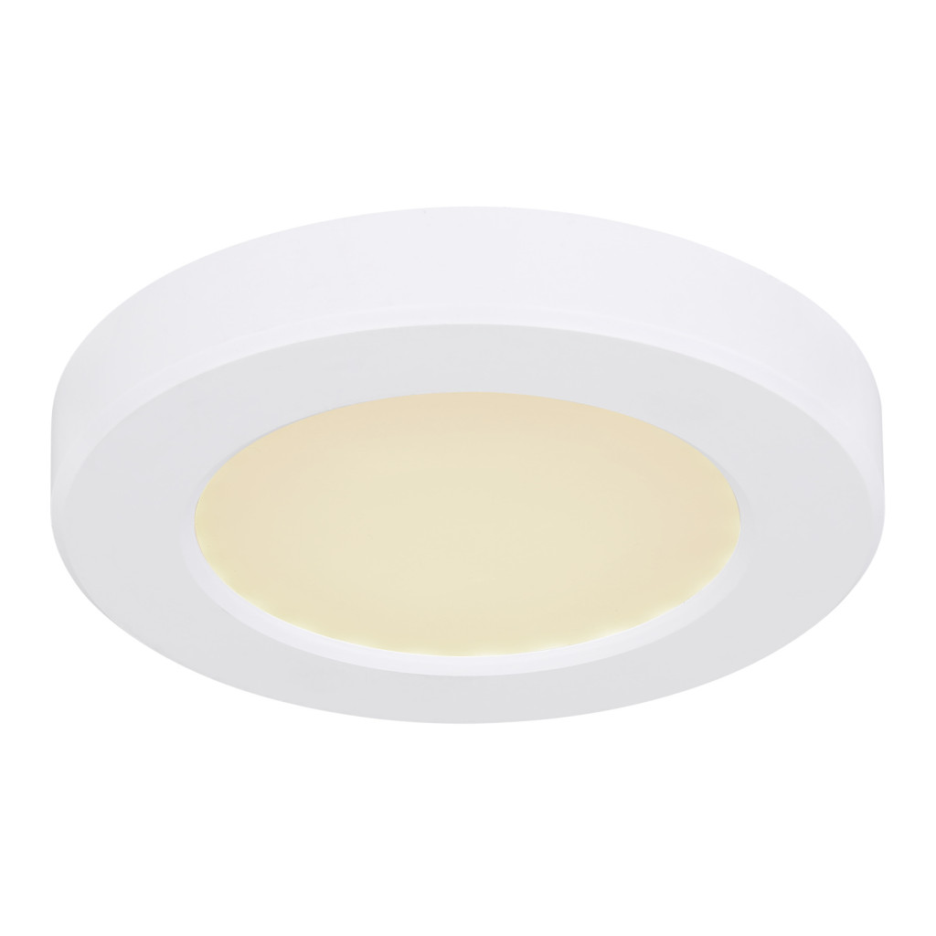 Mennyezeti lámpa, fehér műanyag váz, akril fehér opál búra. Fali kapcsolóról 3 lépésben színhőmérsékletváltós. Ø:126, H:18, inkl. 1xLED 6W 230V, 450lm, CCT 3.000-4000-6.500