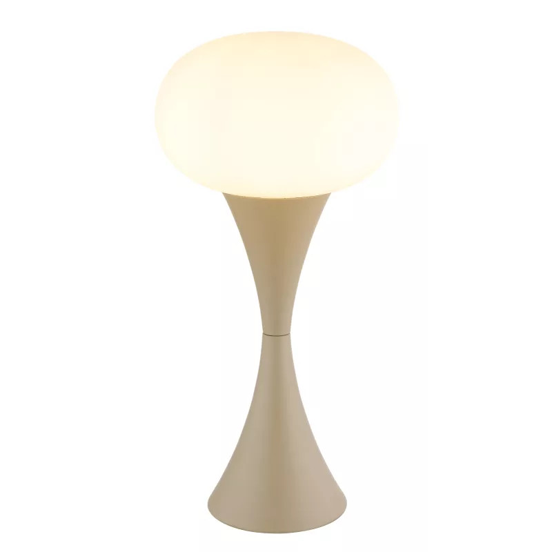 Asztali lámpa, fém homokszínű matt, üveg fehér, kábel PVC fehér, billenőkapcsoló a kábelen, ø: 180mm, M: 369mm, kábel hossza 1500mm, 1x E14 25W 230V izzó nélkül