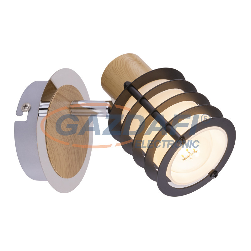 GLOBO 54816-1 VICI Spot króm talpon fa hatású dekorral, üveg opál búrával körbe fekete rács dekorral. BxH:100x120, AL:147, exkl. 1xE14 40W 230V