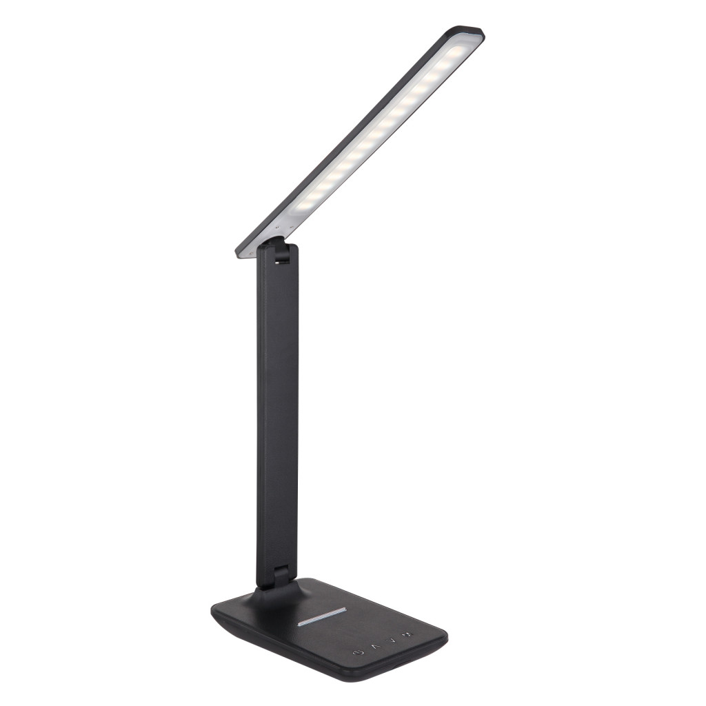 GLOBO 58400S BULLA Asztali lámpa műanyag fekete, bőr hatású megjelenés. Érintőkapcsolóval szabályozható a fényerő és színhőmérséklet. HxSZxM:285x115x565, inkl. 1xLED 5W 230V, 40-400lm, CCT 3.000-4500-6.000