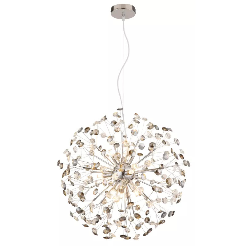 Csillár krómozott fém, füstszínű/átlátszó K9 kristályok, átlátszó PVC kábel, magassága rövidíthető, ø: 600mm, M: 1500mm, izzókkal/10676/: 9x G9 LED 3.5W 230V, 350lm forrás, 350lm kimenet, 3000K