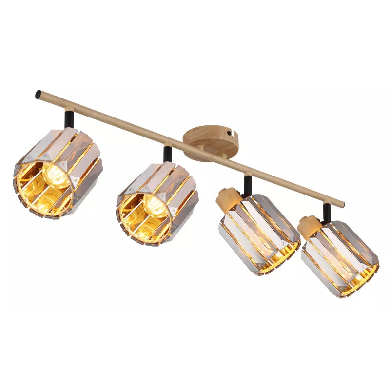Mennyezeti spotlámpa, fém fa megjelenésű, füstszínű K5 kristályok, elfordítható, HxSzxM: 640x90x150mm, E14 40W 230V izzók nélkül