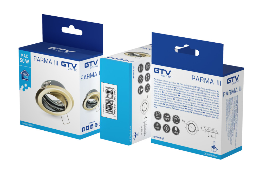 Gyártó GTVAnyag AcélGyártói cikkszám OP-PADRK3-61IP Védettség IP 20Szín AranyTípus Mennyezeti spotlámpaGyártó GTVCikkszám GTV-OP-PADRK3-61