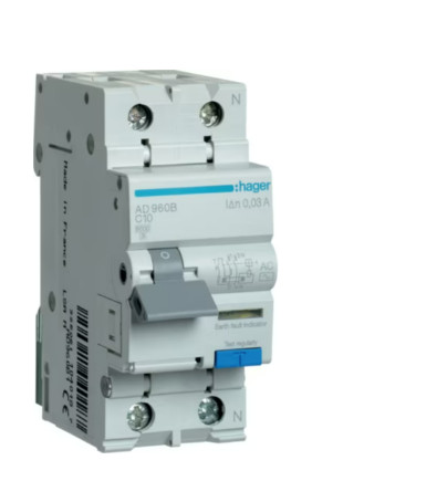 HAGER AD960B Áramvédős kismegszakító 1P+N, C-10A, 30mA, 6kA, AC