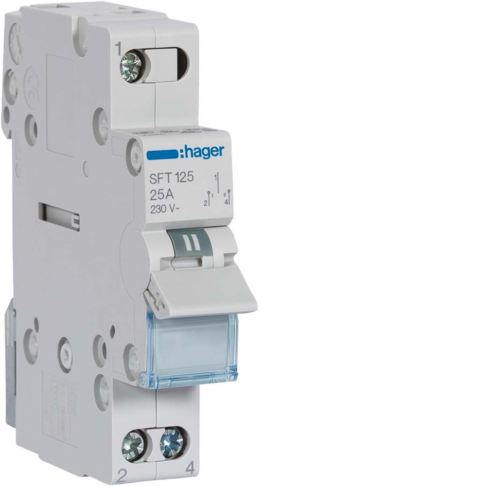 HAGER SFT125 Választókapcsoló, 1P, 25A, I-0-II, moduláris, 1M, közös pont felül