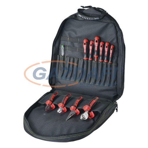 ülő- vagy térdelő munkavégzés esetén, 11 szerszámmal felszerelve,