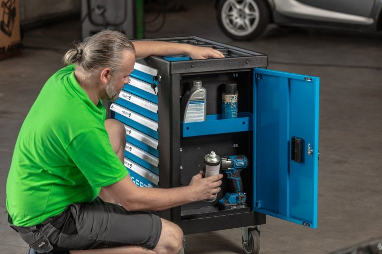 Praktikus és tágas szerszámos szekrény 7 fiókkal és oldalsó rekesszel. A szilárd szerkezet garantálja a hosszú távú használatot műhelyi körülmények között, míg 4 kerék, köztük 2 forgó kerék biztosítja a mobilitást, aminek köszönhetően a szekrény mindig a megfelelő helyen lesz. A megfelelően megválasztott, akár 544 elemből álló, kézműves műhelyeknek és autószervizeknek szánt szekrényberendezések tökéletessé teszik minden szakember munkáját.