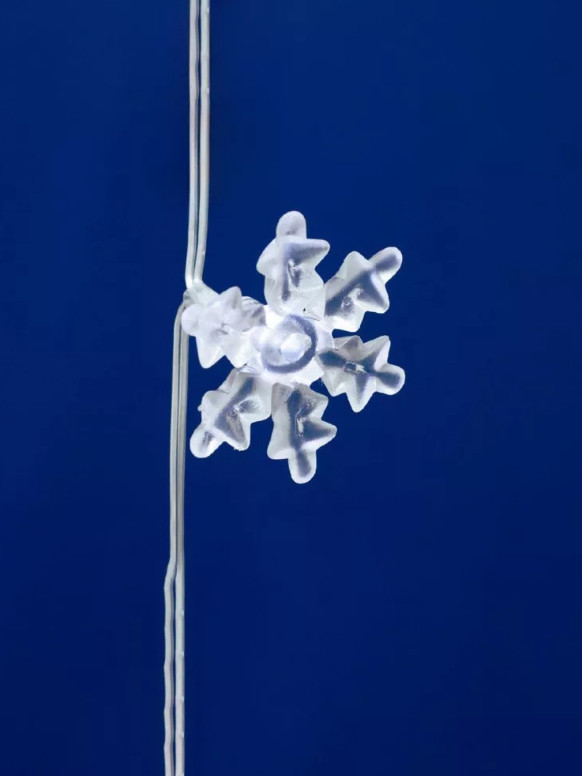 Az átlátszó vezeték szinte láthatatlan, így a figyelem teljes mértékben a ragyogó fényekre és a hópehely mintákra összpontosul. A működésről egy beltéri hálózati adapter gondoskodik, amely stabil tápellátást nyújt.