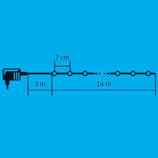 A 14 méter hosszú fényfüzér elegendő ahhoz, hogy nagyobb területeket is díszíthessen vele, a 3 méteres tápvezeték pedig biztosítja a könnyű csatlakozást. A tápellátást a kültéri IP44-es hálózati adapter biztosítja, amely garantálja a biztonságos használatot akár esős időben is.