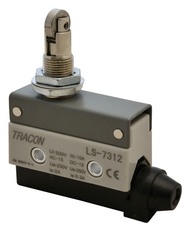 TRACON LS7312 Helyzetkapcsoló, görgős 1xCO, 2A/230V AC-15, 0,3A/250V DC-13, 90°, IP40