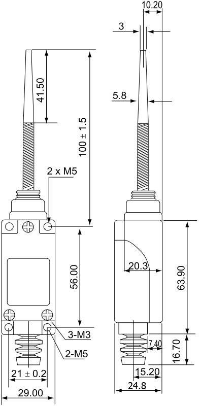 TRACON LSME8166 Helyzetkapcsoló, rugószáras (műanyag+acél) 1xNO+1xNC, 2A/230V AC-15, 0,3A/250V DC-13, 95mm, IP65