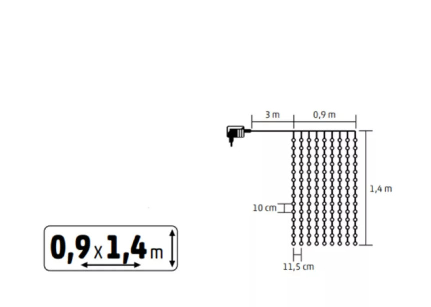 A fényfüggöny 9 külön füzérből áll, amelyek mindegyikén 14 DOT LED világít. Az egyenletes eloszlásnak köszönhetően ablakra, falra, ajtónyílásba vagy akár háttérként is könnyedén elhelyezhető. A melegfehér fény elegáns, modern megjelenést kölcsönöz, amely illik a karácsonyi ünnepi hangulathoz, de bármilyen beltéri eseményhez is ideális.