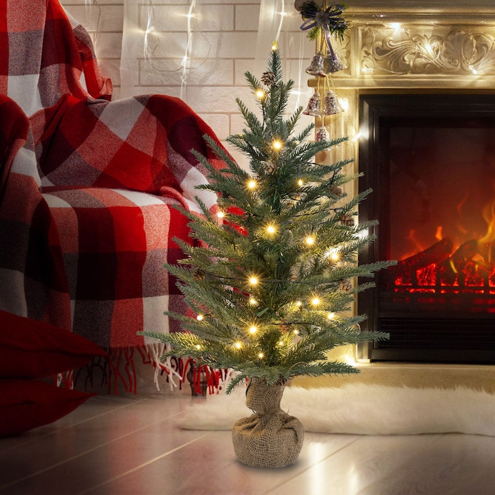 Ez a kompakt, 60 cm magas fenyőfa 30 db melegfehér LED-del világít, amely kellemes, ünnepi fényt biztosít. A sötétzöld vezeték diszkrét megjelenést biztosít, így a fények kerülnek a középpontba.