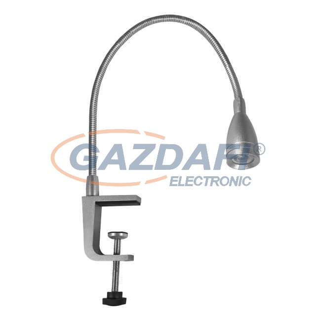 LED asztali lámpa. Ház: acéllemez, védőüveg: műanyag. A lámpatest LED tápegységet tartalmaz, mely vezetékkel csatlakozik a lámpatesthez, szorítóval ellátva, ami lehetővé teszi az asztallaphoz vagy a polchoz való rögzítést.