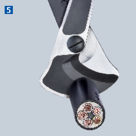 - Nagy, max. Ø 38 mm vagy max. 280 mm² (pl. 4 x 70 mm² NYY) vágási tartomány Cu- és Al-kábeleknél
