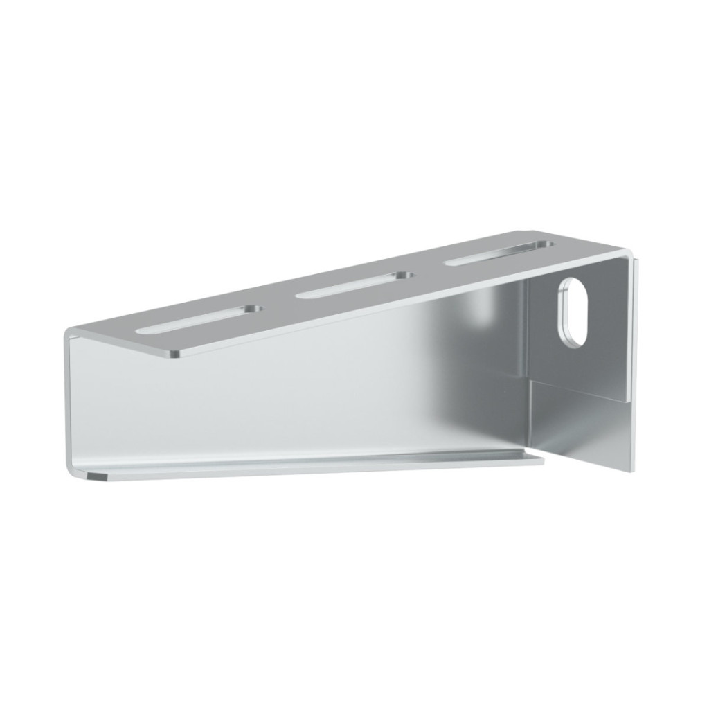 The bracket is designed for mounting cable routes up to 150 mm wide on walls or ceiling profiles. Surface finish - Magnelis®