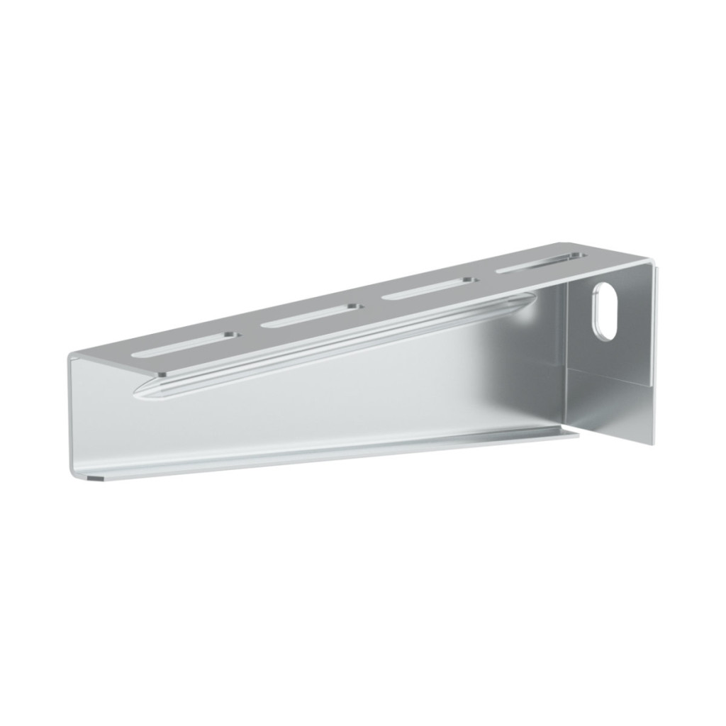 The bracket is designed for mounting cable routes up to 200 mm wide on walls or ceiling profiles. Surface finish - Magnelis®