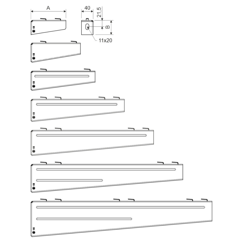 The bracket is designed for mounting 100 mm wide wire cable trays on walls or ceiling profiles. Surface finish - Magnelis®