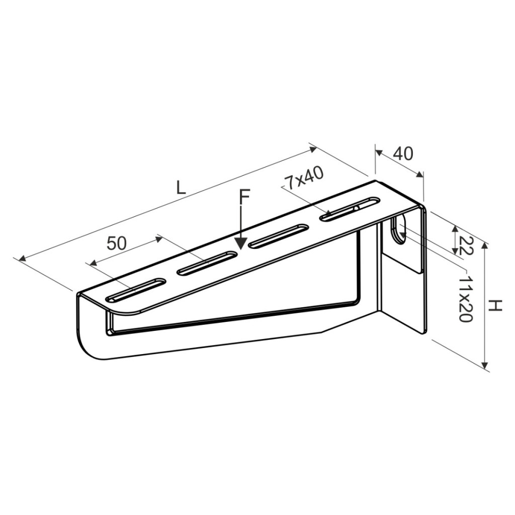 The holder for mounting cable routes of width 300 mm on the wall, medium mechanical resistance, surface finish hot dip galvanized