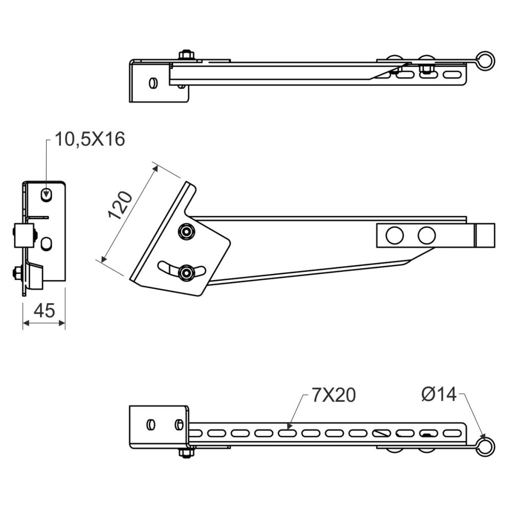 > A konzol lehetővé teszi kábeltálcák rögzítését ferde szerkezetekhez 45°-os szögig.