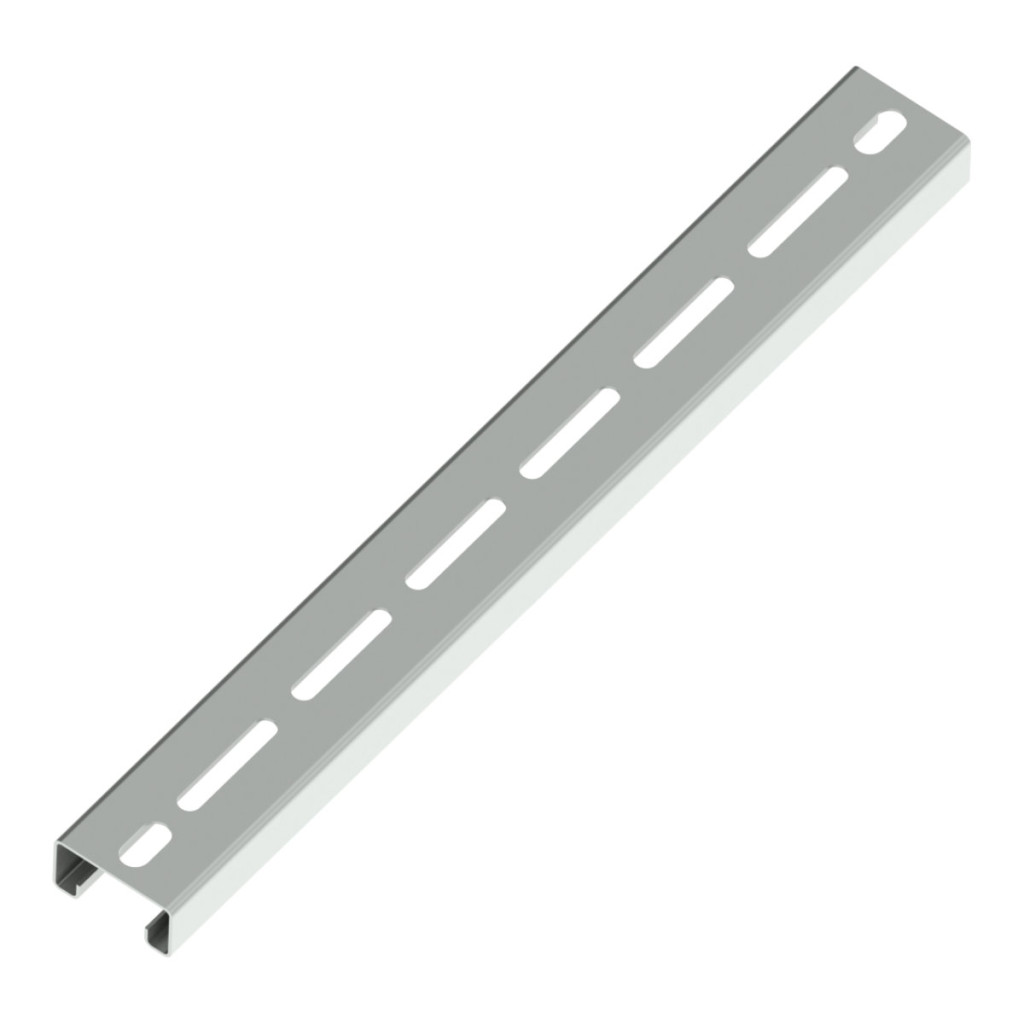 Stainless profile for assembly of cable routes, for example to the threaded rods, profile length 350 mm.